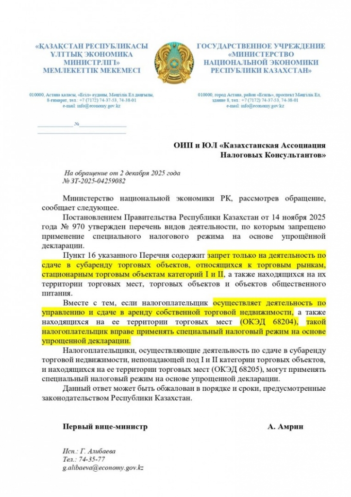 Ограничение на применение специального налогового режима (СНР) распространяется исключительно на деятельность по сдаче в субаренду торговых объектов, относящихся к торговым рынкам, стационарным торговым объектам 1-й и 2-й категорий, а также находящихся на их территории торговых мест, торговых объектов и объектов общественного питания.