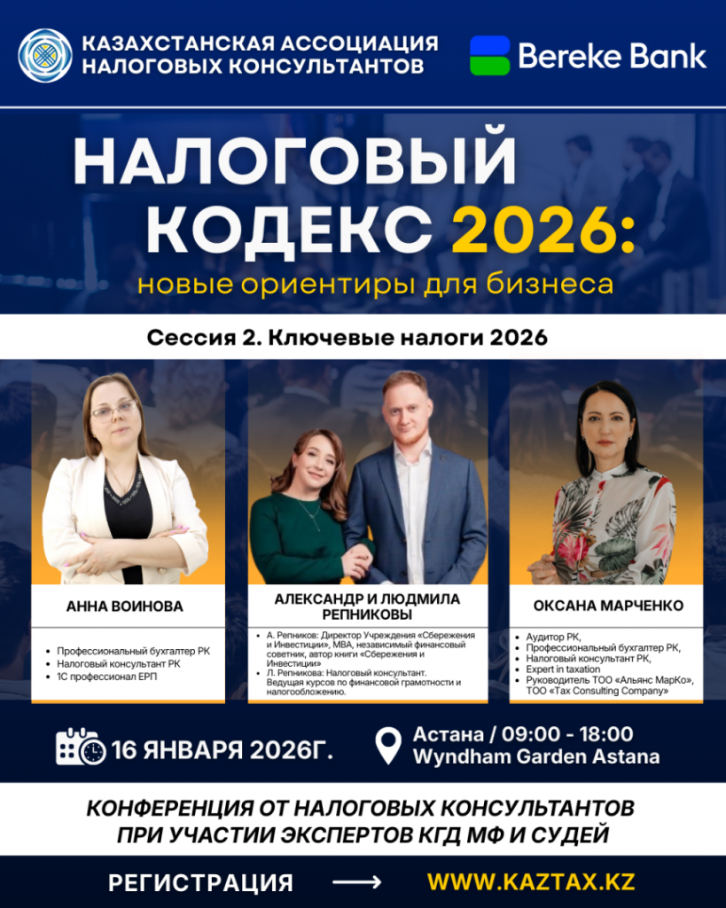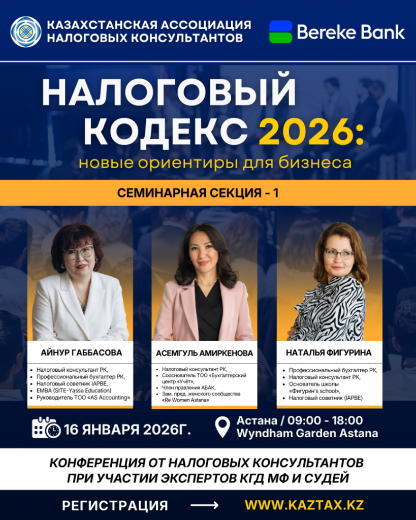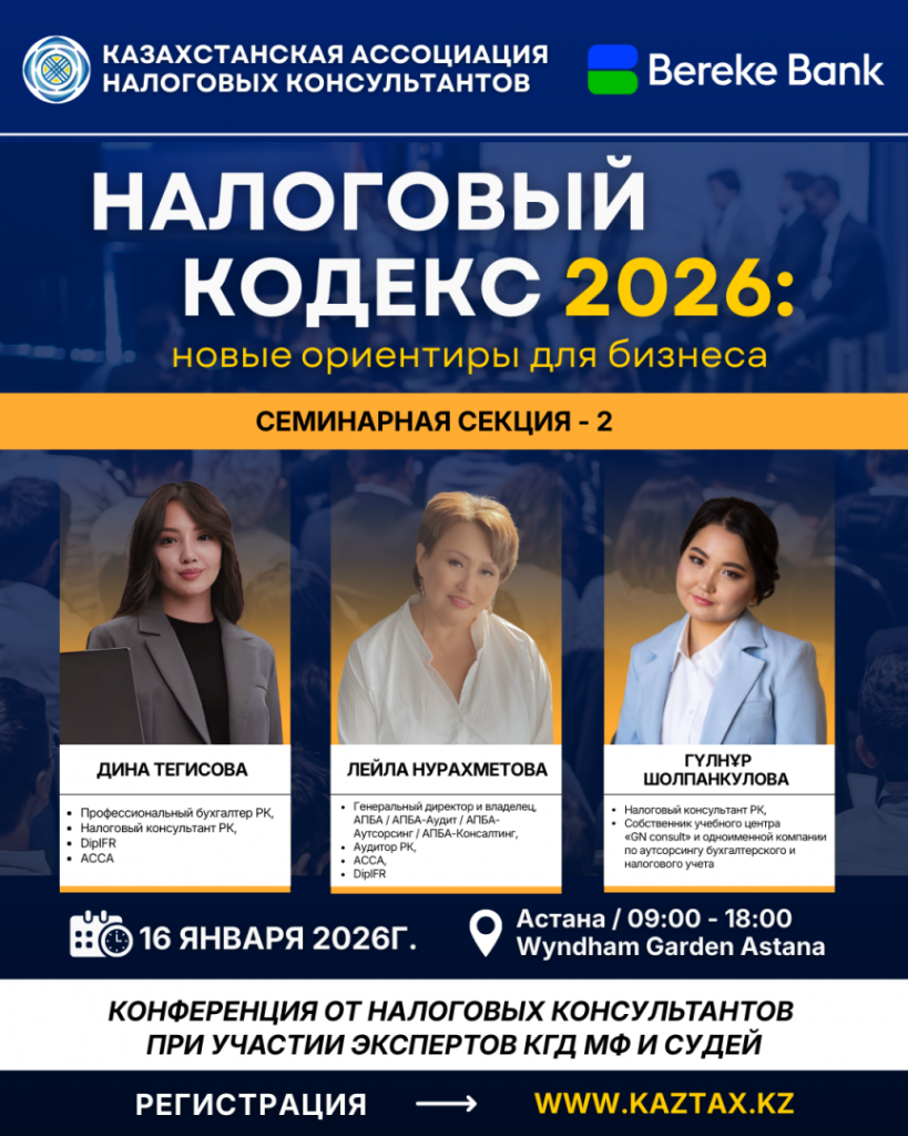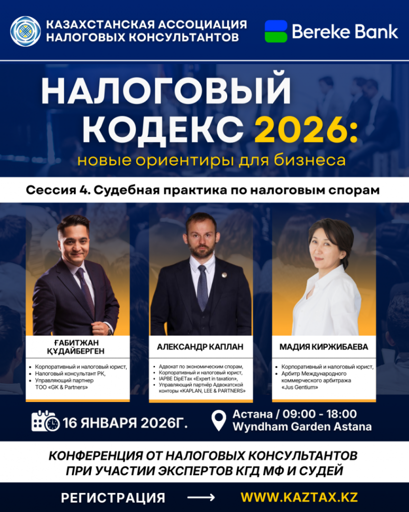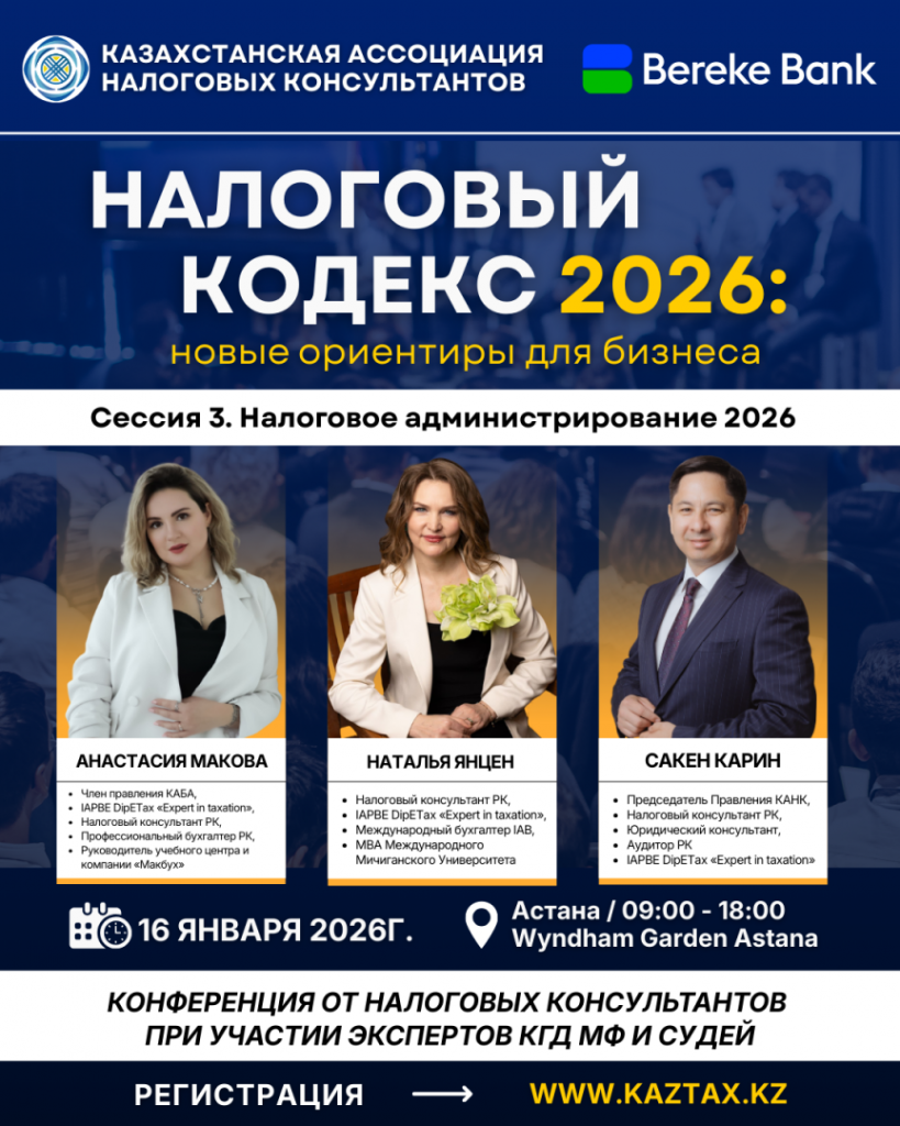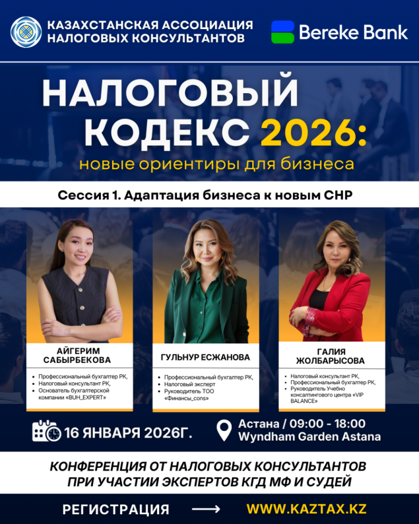 Уже совсем скоро в столице состоится первая республиканская конференция Казахстанской ассоциации налоговых консультантов, при поддержке АО «Bereke Bank», в рамках которой 20 ведущих налоговых экспертов выступят с докладами по ключевым положениям нового Налогового кодекса.
